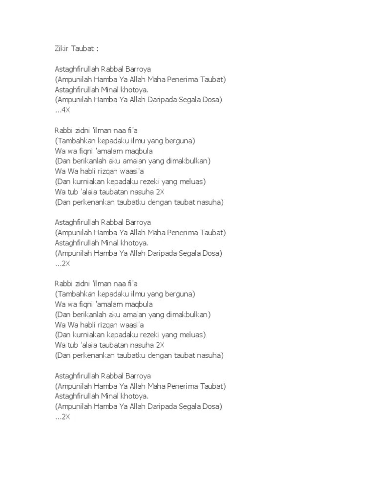 Istighfar zikir taubat nasuha penenang hati astaghfirullah rabbal barroya rumi. Berikut adalah zikir taubat nasuha yang mudah dan ringkas untuk dijadikan amalan harian. Doa taubat rumi, cara solat taubat dalam bahasa rumi, doa taubat nasuha rumi, tak pandai solat taubat, doa solat taubat rumi, solat taubat .